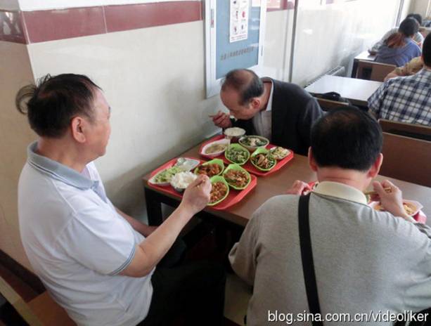 中午到了,学校为我们预备了一顿免费的怀旧午餐,看到如今学生食堂规模之大,饭菜品种之丰盛,价格之便宜,让我想起当年我们伙食之艰苦。不只是饭票定量,菜肴更单调(一勺菜),主食以吃粗粮为主,很少能吃米饭和馒头。在某一宿舍楼前,我还看到有骑摩托车为学生送餐的服务生,不禁大为叹之,不知是一种进步,还是退步?