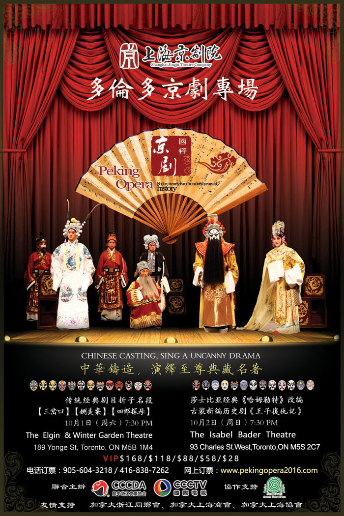 【加国生活网】享誉中外的“上海京剧院”将于多伦多敬献两场经典大戏,2016年10月1日和10月2日开演,多伦多戏迷将大饱眼福和耳福啦!