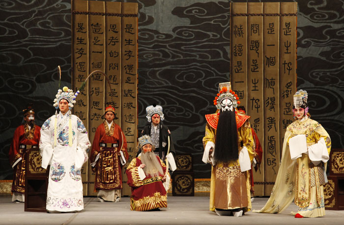 将莎士比亚的名作改编为京剧,是一次东西方戏剧的交汇,也是一次文化的对话。《王子复仇记》是一次纯京剧化的尝试,在舞台呈现上严格遵守京剧写意和虚拟的美学原则,致力于对京剧表现法则的深入开掘,以强有力的程式化的表演塑造人物,追求简约、空灵、写意的艺术风格。