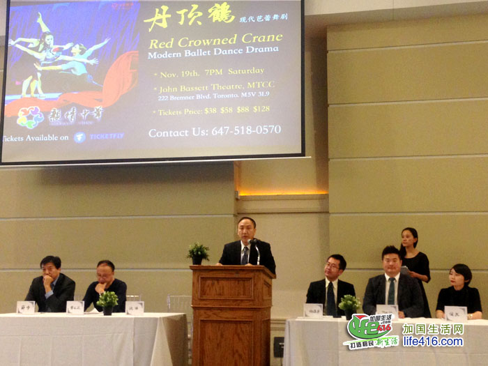 【加国生活网】中加文化交流年项目-大型现代芭蕾舞剧《丹顶鹤》北美巡演新闻发布会于2016年11月8日中午12点整在多伦多顺利举行。作为2015-2016中加文化交流年的一部分,国际版《丹顶鹤》由中国侨联主办,联合加拿大无锡商会(CWXCC)、密西沙加华人艺术团(MCAO)及加拿大亿麦传媒(Imagic Inc.)共同承办,加中文化艺术协会、多伦多韵舞蹈团、Lindance舞动之星舞蹈学校、蔓玲舞蹈学校协办。