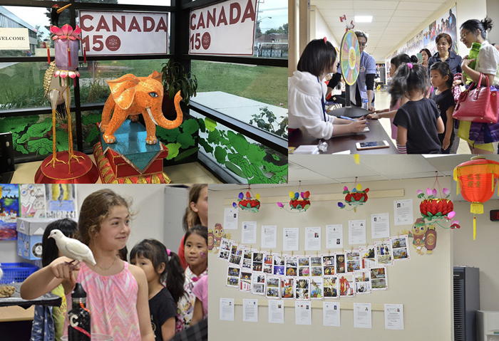 多种传统秦淮手工花灯展示、150张记录2013-2017年五届多伦多秦淮灯会的精彩图片展让大家眼前一亮。幸运转盘游戏中,大多数人都抽到了各种加拿大国庆主题的纪念品,魔术师的表演更是让孩子们亲自上阵与小鸟同乐!