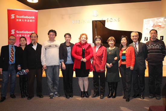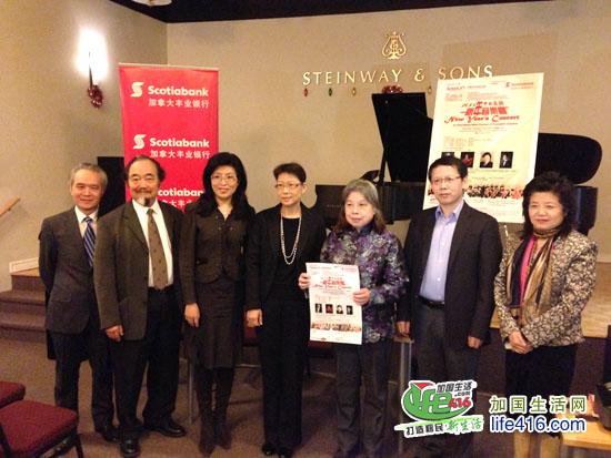 【加国生活网】李德伦音乐基金会在SteinwayPianoGalleryRecitalHall召开新闻发布会,宣布“2015中西汇粹新年音乐会”于2015年1月10日举行。基金会理事长李燕、Scotiabank亚洲业务部总监杨梁玉仪等在会上作了发言,Pondo Communications总裁Victor 鞠及加拿大中国专业人士协会、北美国际交流协会、李德伦音乐基金会成员及指挥赖德梧先生,女高音歌唱家刘玉梅、男高音歌唱家李华典等出席了发布会。青少年钢琴家麦子轩Jonathan Mak 演奏了李斯特第12号匈牙利狂想曲。刘玉梅在招待会上在钢琴家伊嘎的钢琴伴奏下演唱了普契尼的“我亲爱的父亲”,男高音歌唱家李华典演唱了王洛宾写的歌曲“在那遥远的地方”。他们的精彩演唱收到在场媒体的热烈欢迎。