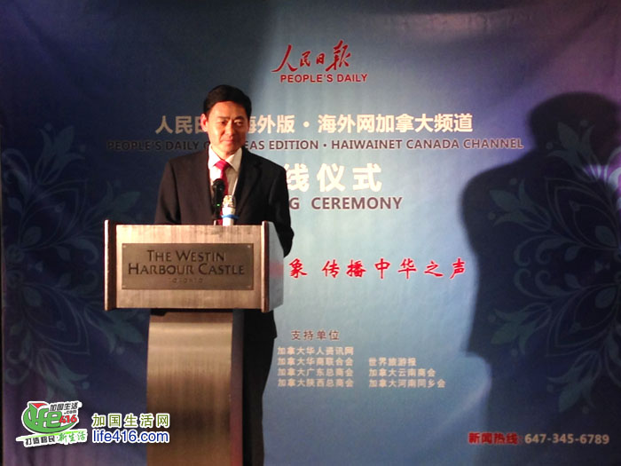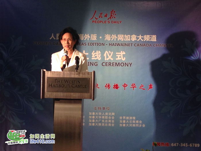 中国侨联主席林军,中国驻多伦多总领馆总领事薛冰,人民日报海外版副总编辑刘玉琴先后在上线仪式上致辞。