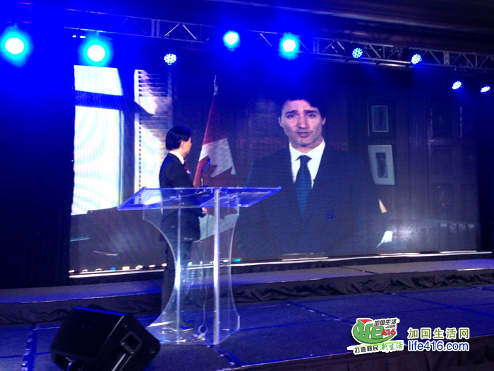晚宴获得总理杜鲁多透过录影发表的贺词,并于席上播放