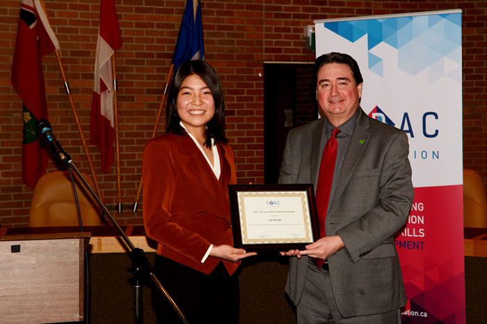 Jorge Cardelus, Relationship Manager, Affinity Market Group, TD Insurance Meloche Monnex(右)为Sari Ohsada(左)颁发CPAC - TD Insurance Meloche Monnex Scholarship