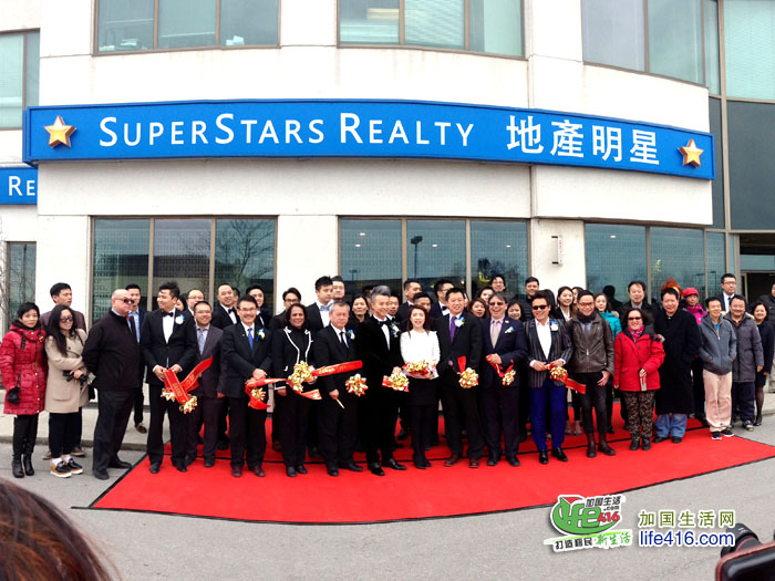 【加国生活网】地产明星集团(Superstar Realty Ltd.)为其全新打造的地铺型办事处于2017年3月30日举行了简单而隆重的开业剪彩仪式。万锦市区域议员李国贤(Joe Li)、安思创(Nirmala Armstrong)、万锦市市议员何胡景(Alan Ho)、烈治文山市议员廖立晖(Castro Liu), 陈志辉(Godwin Chan),以及各界商业知名人士、十余家多伦多主流媒体莅临现场,共同见证了这一重要时刻!