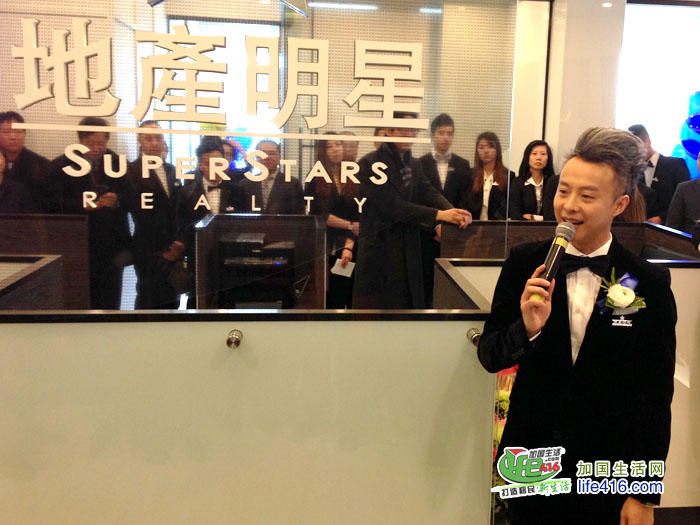 在仪式上,总裁萧嘉俊先生(Mr. Leo Shiu)代表地产明星集团发表致辞,他首先感谢了社会各界人士对于地产明星集团的支持与厚爱,并且阐述了“明星理念”的深层内涵。他说:“之所以用‘明星’来命名,是希望借助公司的平台和团队的力量,将每一位成员打造成知识素养与专业形象兼备的‘明星’经纪。同时,将传统营销模式与数字化营销相结合,为每一位客人提供‘星级’的优质服务,为他们的房子提供‘星级’的全方位包装。为了更好的达到这个目的,集团旗下的明星推广(Superstars Marketing Inc.)公司一直予以全力支持,而明星布置(Superstars Staging Inc.)公司也在这个月正式开始运营。”他还说,“办事处的启用,是地产明星集团发展的重要一步,彰显了品牌的实力,也标志着‘明星理念’的再升级,全面落地为集团内部成员和客人带来切实的帮助和收益。”