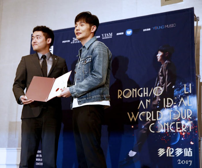 【加国生活网】由加拿大亿麦传媒主办的“李荣浩有理想 An Ideal World”世界巡回演唱会多伦多站即将于2017年4月7日晚7点在Sony Centre隆重上演。演唱会信息自发布以来,在多伦多就引起了广泛讨论。今日,歌手李荣浩及随行人员也专程提前飞抵多伦多参加此次的新闻发布会。而这次新闻发布会也象征着北美巡演之旅的正式开幕。