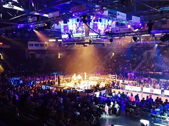 2017年5月16日下午,“武林风”首届中加自由搏击争霸赛在大多伦多区密西沙加市的Hershey Centre盛大举行。这次赛事是中国和加拿大之间的首次对抗,因此格外引人注目。十位来自中国的武林顶尖高手与十位加拿大自由搏击名将展开了东西方格斗的面对面较量。经过十场激烈鏖战,远征加拿大的中国队以6:4的大比分赢下了比赛。