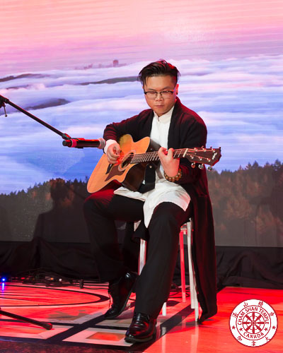 人们还记得第八届千人素宴上著名歌手付笛声一家的精彩演唱。今天参加佛诞演出的是付豪是付笛声和任静的儿子付豪,他演唱的歌曲《一生烟雨》和《老和尚念经》,不仅让人想起来以前佛诞的盛况,也让人感到新一代歌手的实力不可小觑。被称为“星二代”“付二代”的付豪其实是湛山精舍的一位佛弟子。两年前在他父母的陪同下在湛山精舍皈依了佛教,而且还是中国大陆一位非常优秀的音乐创作人及歌手。他专程不远万从中国赶来,表达了一位湛山弟子的的心声。