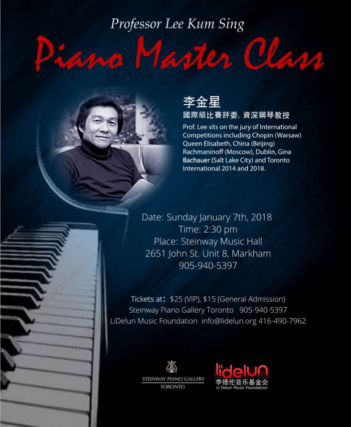 李德伦音乐基金会与Steinway Piano Gallery 将举办李金星教授钢琴大师班及对话