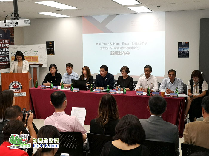 加中地产投资总商于2019年7月31日举办新闻发布会,主办单位加中地产投资总商会会长孙志峰;前任会长袁浩彬;荣誉会长(创会会长)黄力;前任会长江邦固;常务副会长陈国强;秘书长陈虹;副会长王浩、张夏景;协办单位嘉德博览CEO Amy Wang;房博会参展企业代表Reliance Home Comfort区域经理Sreekanth Kumar;房博会参展企业代表 Sotheby‘s International Realty Canada 的Jenna Khong 及媒体朋友近百位嘉宾出席会议。