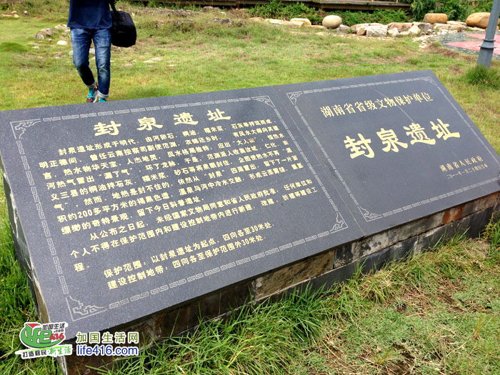 “封泉遗址”讲述的是这样一个故事:明正德年间,曾任云南按察司副使范渊,衣锦还乡时,有风水大师向其建言称,热水物华天宝、人杰地灵,风水格局独特,应出“大人物”,可惜热水河热气冒出“漏了气”,坏了龙脉,于是范渊派人收集汝城、仁化、崇义三县的桐油拌石灰、糯米浆、砂石将泉眼封住,企图使热水不再“漏气”,然而地热是封不住的,依然从“封泉”四周冒出,留下了一片面积约200多平方米的褐黑色遗迹,温泉与河中水冷水交融,形成云蒸雾绕的奇特景观,留下今日的科普遗址。