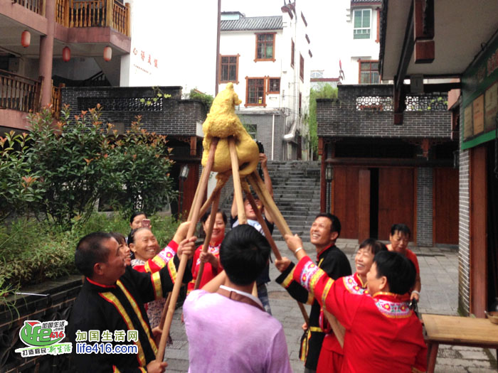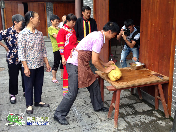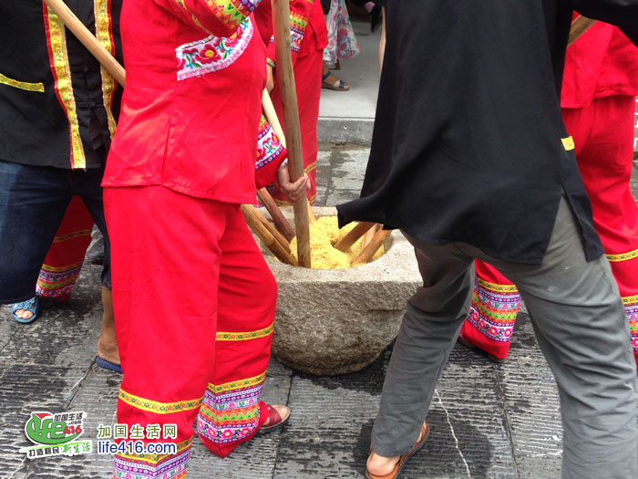 远远地传来一声声吆喝声,一群畲族男女正在做米糍