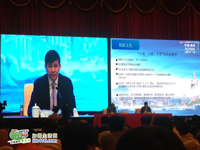 2017年9月13日,由国务院侨办、福建省人民政府、中国新闻社主办,莆田市人民政府、福建省人民政府新闻办公室、福建省侨办、中国新闻社福建分社共同承办的第九届世界华文传媒论坛“海上丝绸之路视野下的妈祖与海外华文传媒”主题论坛在福建莆田市举行。国务院侨办副主任谭天星,副省长杨贤金,中国新闻社社长章新新,市委书记林宝金分别致辞。