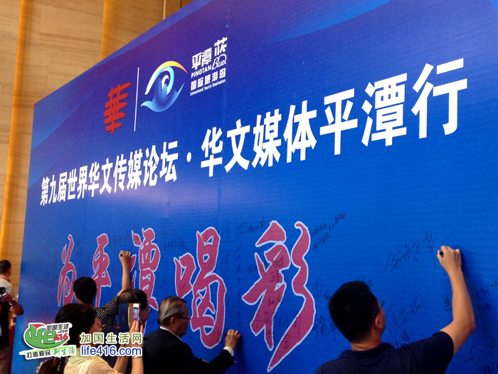 海外华文媒体的平潭行是先从“为平潭喝彩”的签名墙开始的。
