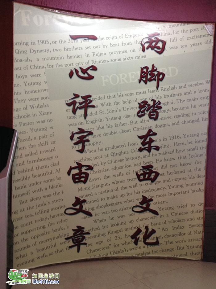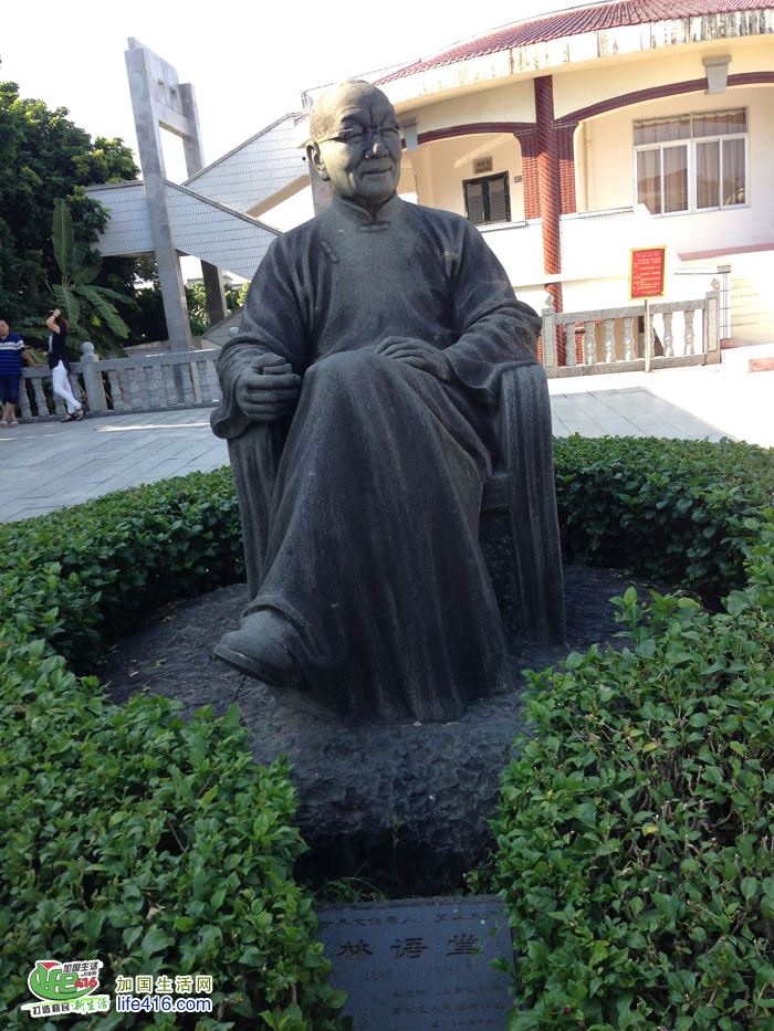 纪念馆前,安放一尊林语堂先生的塑像,由中国著名雕塑家李维祀教授设计制作