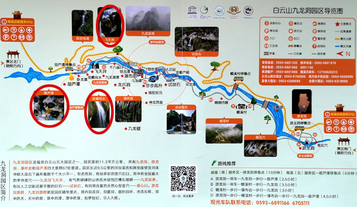 以上的葫芦潭、飞天井、金蝉戏水还只是九龙洞园区的其中三个景点,看看此图就知道九龙洞园区里还有许多引人入胜景点。