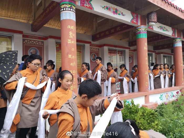 【加国生活网】10月10日,参加2019“海外华文媒体感知中国(四川藏区)行”活动的来自28个国家的68家海外华文媒体到松潘县“七一”藏文中学采访。