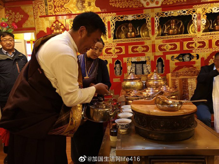 华文媒体团又来到林坡村村长家采访,在这座两层藏式楼房里,会客厅、厨房、休息室、娱乐室等功能区齐备,液晶电视、电冰箱、全自动洗衣机等现代化家电一应俱全。林坡村村长家也是民宿,处处都能看到藏族风格的装修设计。
