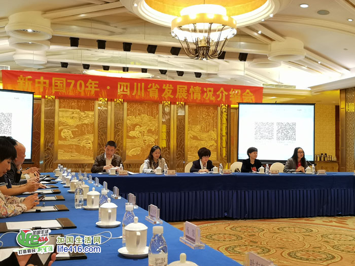 “新中国70年—四川省情介绍会”由四川省委宣传部宁光霞副处长(右一)主持