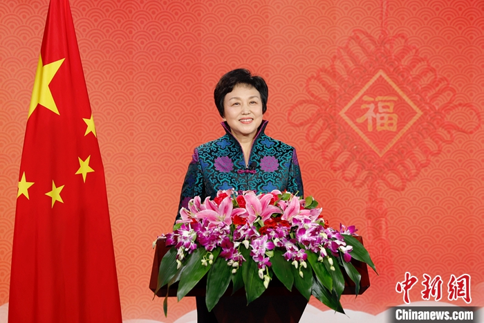 在中国农历龙年春节即将到来之际,中国国务院侨务办公室主任陈旭在北京发表新春贺词,向广大海外侨胞和归侨侨眷致以新春祝福。 中新社记者 韩海丹 摄