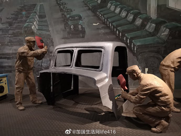 后来到了二十世纪五十年代从法国进口了这个大家伙,工人们自己研究组装,仅用了20多天就上线生产了,终于结束了手工生产汽车的历史。