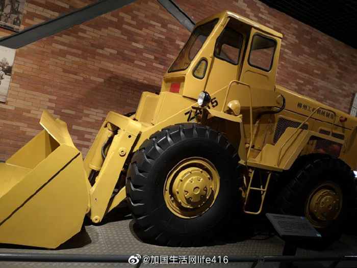 像图示这款挖掘车在进博物馆之前还一直在使用着,轮胎坏了用铁板打个补丁还能继续使用。后来博物馆和车主人商量以旧换车,才把这个大家伙请进了博物馆。