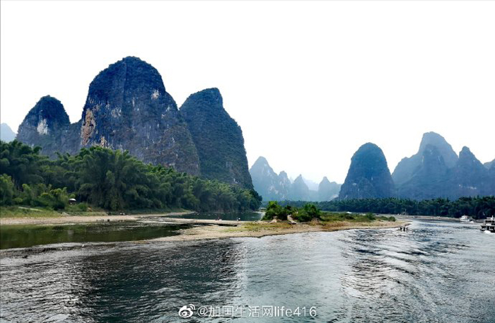 这是漓江另一处著名景点——人民币20元背景图的拍摄地点,船行此处时,游客们纷纷拿出20元纸币对照,大家快看看,小编拍得象不像?