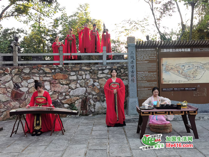 据介绍,该景区以赤壁之战的历史和主要人物为基础,以兵临城下、运筹帷幄、火烧赤壁、三国鼎立为故事线串联摩崖石刻、周瑜广场、拜风台、凤雏菴、陈列馆、三国古街等景观节点。 周瑜点将台 据悉,三国赤壁古战场景区还推出了三国宴、赤壁鱼糕、小乔饼、关刀鱼等特色美式,让游客感受“舌尖上的三国文化”。数据显示,该景区年均接待游客60万余人次,其中海外游客量约占10%。