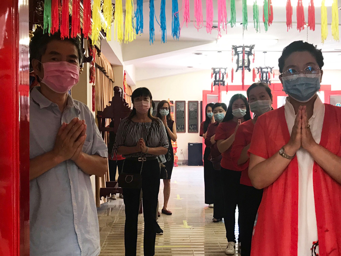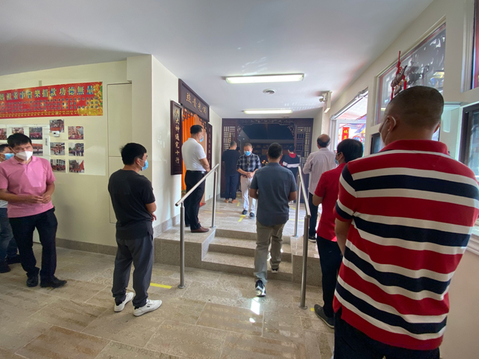 信众自觉保持2米安全距离上香、敬拜诸佛。
