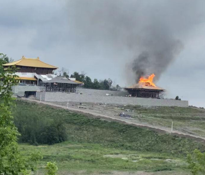 2022年7月24日午后的一场火灾,将正在施工中的加国五台山地藏宝殿化为乌有。火灾发生后,当地几个城镇的近40位消防员、救护队和警察第一时间赶到现场奋力救火,将损失降到最低。