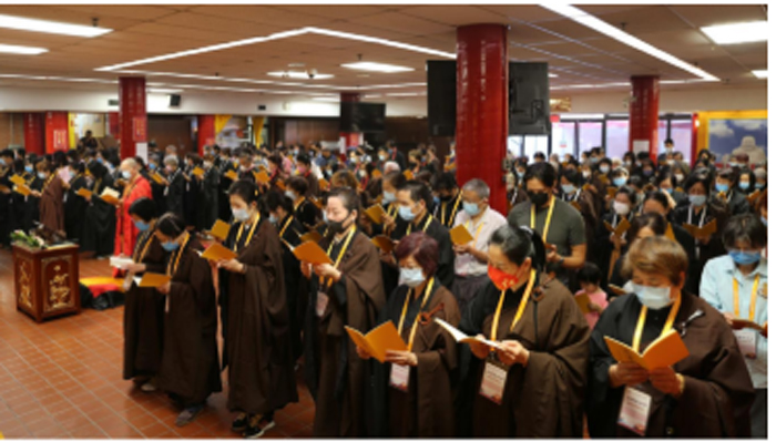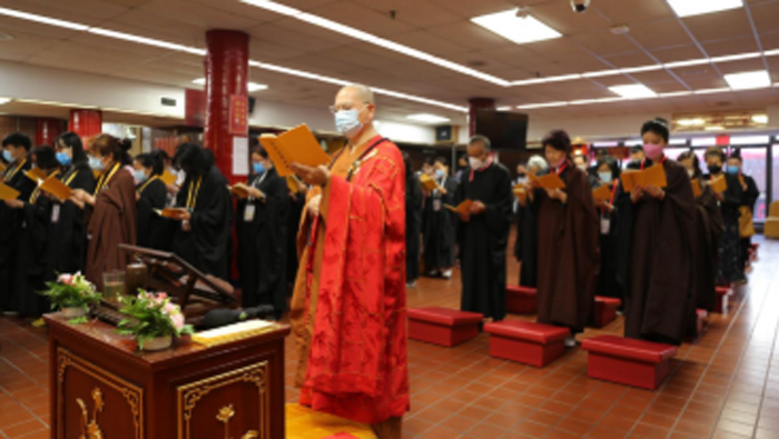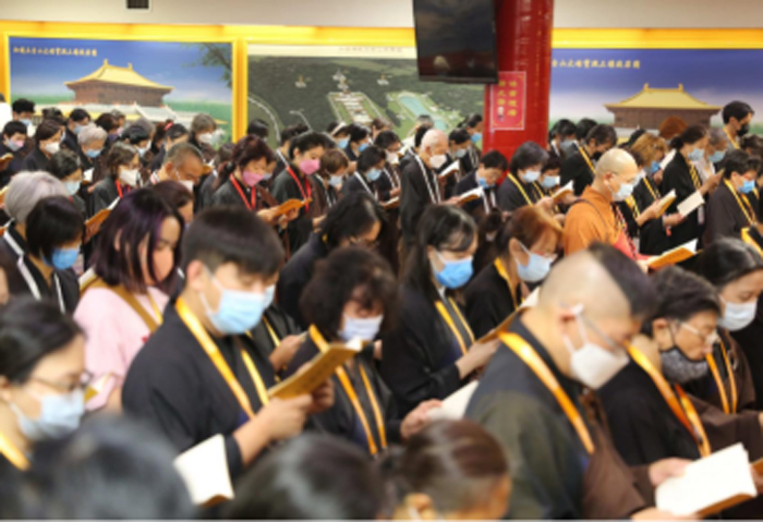 坛场内,大眾「一心精进」,保持正念、正知,心不异缘,都摄六根,净念相继。