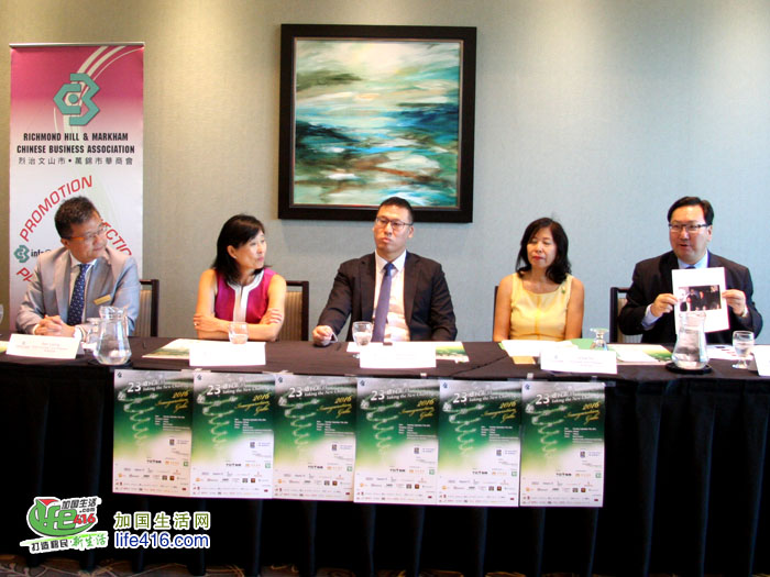 【加国生活网】烈治文山市&万锦市华商会于2016年9月6日举行新闻发布会,宣布陈卓彦先生获选为该会新一届会长,新会长及会董就职晚宴将于9月17日举行,当晚同时庆祝该会成立23周年,晚宴部分收益将捐给万锦多福医院(Markham Stouffville Hospital),回馈社会。