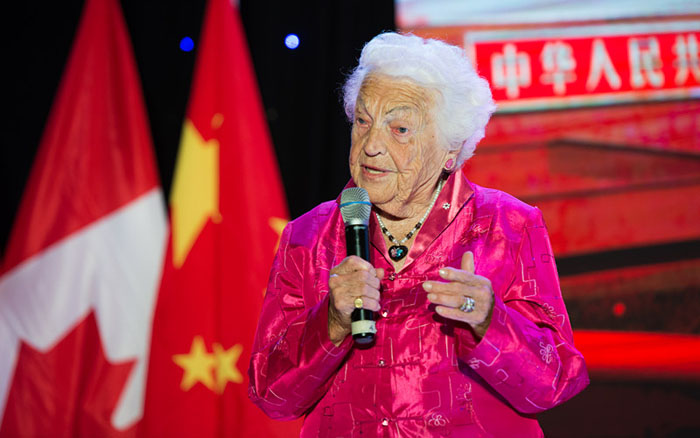 96岁高龄的密西沙加市前市长麦考莲(Hazel MaCallion)致辞