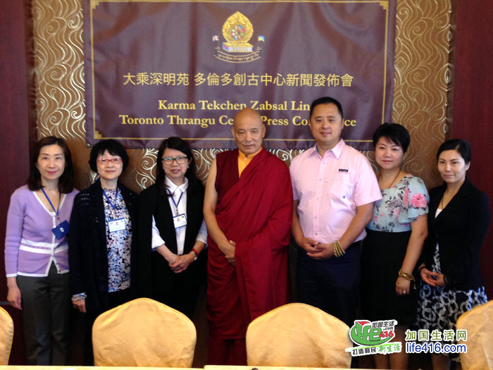 【加国生活网】由多伦多大乘深明苑创古中心主办、加拿大佛教文化促进会协办的“第九世堪千创古仁波切主持中阴开示及文武百尊大灌顶”新闻发布会于2018年6月19日在皇家御宴举行。参加新闻发布会的有:多伦多创古中心的住持Lama Tashi Dondup, Abbot、中心董事Betty Lam、Polly Tong和Fiona Chen(右一)。
