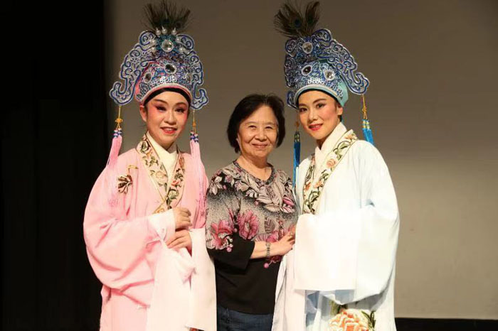 最值得一提的是,作为这两场演出的艺术总监,多伦多越剧团指导老师沈韵秋不仅要监督演出质量,还要准备自己的节目,因为今年是沈韵秋老师从艺六十年,她也想通过此次演出来纪念一下这个重要年份。作为原上海越剧团的专业演员,沈韵秋老师给多伦多观众带来了长达35分钟的折子戏《赖婚记》,她将戏中那个势力的继母陈氏演绎得丝丝入扣、活灵活现,现场观众掌声不段,笑声亦是不停。许多观众纷纷表示,本以为自己看那么长段的越剧会昏昏入睡,没想到越看越兴奋,越看越有趣。他们不仅融入了剧情,更是纷纷折服于沈韵秋老师的高超演技和扎实的舞台功力。特别是戏中有大段快板唱腔,已经七十多岁的沈韵秋老师字字珠玑、句句铿锵,让观众们大呼过瘾,叫好不断。