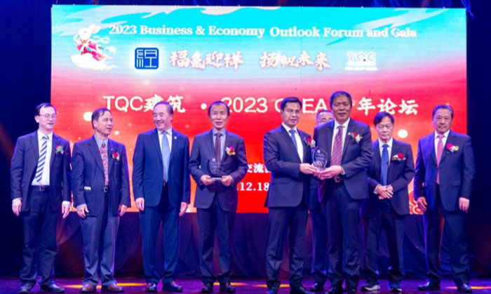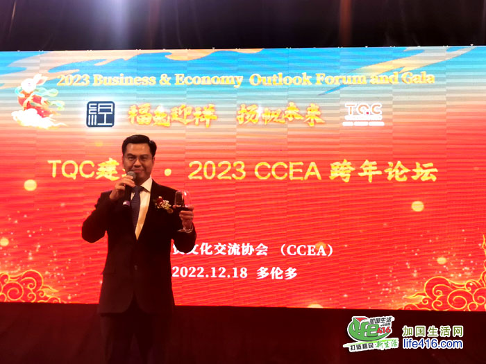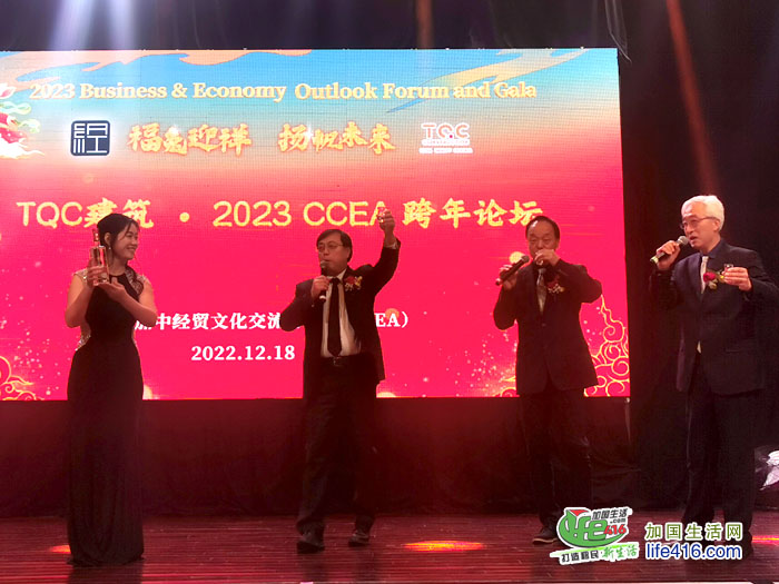 【加国生活网】“知识跨年”现在已经成为广受欢迎的跨新年方式,加中经贸文化交流协会于2022年12月18日在多伦多钓鱼台国宴成功主办了由TQC建筑冠名赞助的 “TQC建筑• 2023 福兔迎祥 扬帆未来 跨年论坛与晚宴”。300多位本地地产、商界、金融界精英、经济界知名学者、社团领袖,高校校友会长代表,媒体等齐聚一堂,共享智慧、共探未来。
