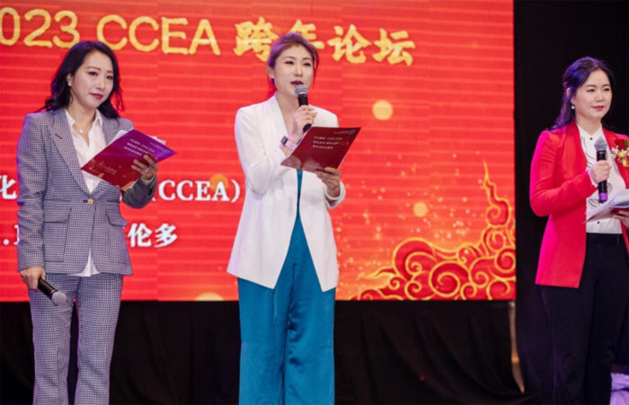 CCEA 跨年论坛主持人 CCEA 副会长韩笑博士(中)、王慧和王晓蓉教授