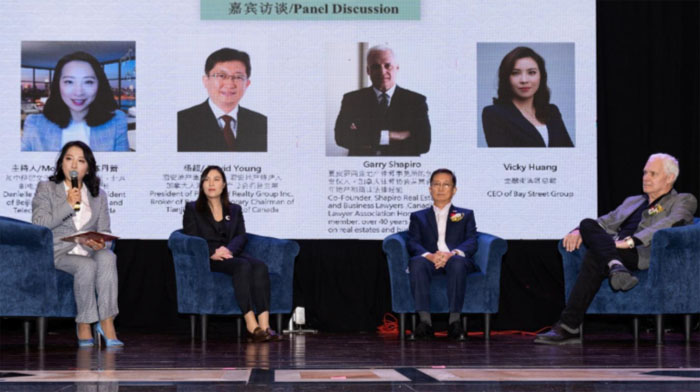 从左至右: CCEA副会长、北邮加拿大校友会会长陈丹蕾;Vicky Huang,金融街集团总裁;杨超, 君安地产集团总裁,君安地产持牌人,加拿大天津社团联合总会名誉主席; Garry Shapiro,盖瑞.夏皮罗地产与商业律师事务所创始人