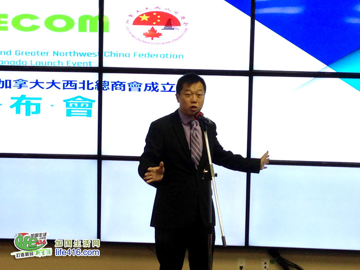 发布会的另一个主题是祝贺加拿大大西北总商会正式成立。加拿大大西北总商会是在2017年12月18日在加拿大联邦政府注册的非盈利会员制团体组织,是由工作和生活在中国大西北地区和加拿大的企业家们组成。加拿大大西北总商会会长张运波先生表示:“我们的宗旨就是加强加拿大和中国大西北地区之间的贸易合作、商业投资和文化服务,为商会的会员们提供一个包括矿业、金融、地产、农业等领域的贸易平台和科学、技术、教育等方面的信息交流中心,利用加拿大和中国大西北地区的多种资源为加中两地增加更多的投资及商业机会。”