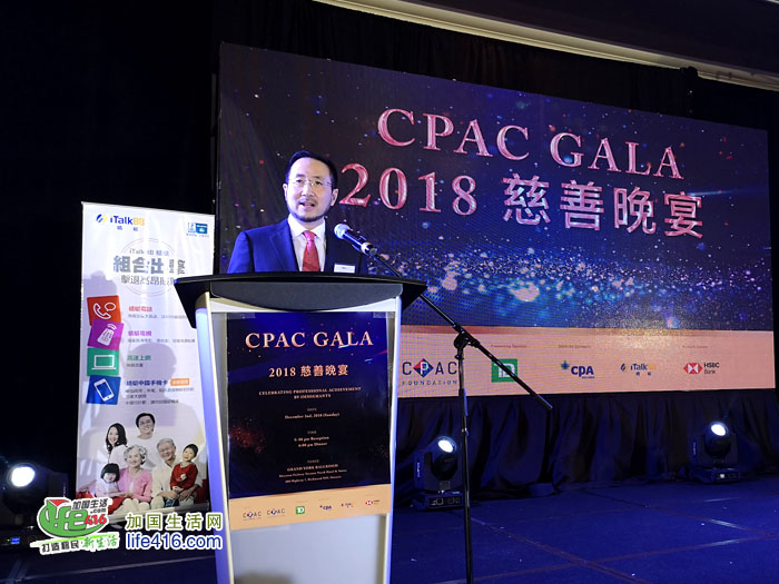 “CPAC年度慈善晚宴为我们提供了一个表彰移民社区成功楷模的宝贵良机,同时也是极具意义的筹款活动,让我们得以为广大移民专业人士及学生提供更多的帮助。在过去的二十六年里,为移民专业人士提供帮助是我们一直在坚守的信念。我们定会在未来的道路上不竭余力,继续为社区贡献自己的一份力量,”CPAC会长肖楚强先生(Eric Xiao)在欢迎辞中说到。