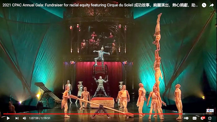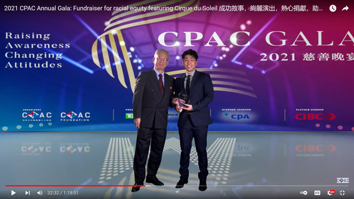 CPAC慈善晚宴作为多伦多社区的一个年度盛会已经举办了近二十年,一直获得商界人士、社区组织、专业团体和CPAC会员的高度关注和广泛参与。作为大多伦多地区规模最大、档次最高的移民专业人士年度社交活动之一,CPAC慈善晚宴为参会嘉宾搭建了与多伦多政界、商界及社区领袖进行交流的理想平台。受到疫情的影响,今年的CPAC慈善晚宴在网上举行,也获得了社会各界人士的大力支持,各级政府领导人亦发信祝贺。高质量的晚会内容,颁奖仪式和加拿大国宝级演艺团体、太阳马戏团(Cirque Du Soleil)的精彩演出让观众大饱眼福,受到观众们的一致好评,太阳马戏团的主席兼首席执行官Daniel Lamarre先生也特别发来视频对晚会本身和CPAC所从事的事业表示支持。