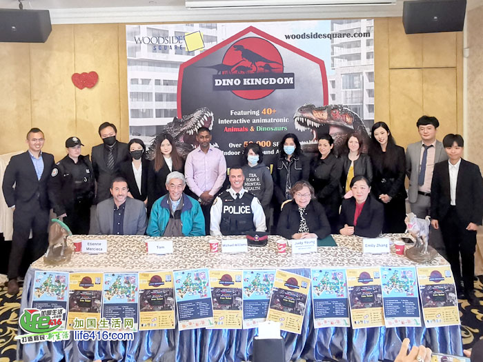 【加国生活网】Woodside Square于2022年9月23日星期五在CASA DELUX召开了有关Dino Kingdom恐龙乐园的新闻媒体发布会,当地社区议员代表、周围学校校长及学校代表、42分局警察代表及社区委员会主席、中外多家媒体等嘉宾出席了本次新闻发布会。