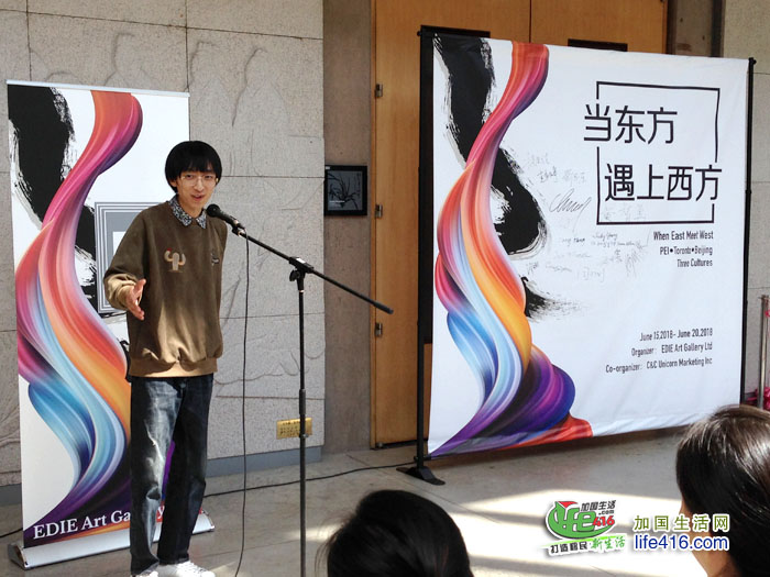画家代表Julia表示爱德华王子岛(PEI)盛产红土,红土上长满茂密的绿草,铁锈红与草绿的色块堆积构成一幅有强烈视觉冲击的天然图画,她热爱这片土地,希望用手中的画笔来描绘这片美丽的土地。孙昌茵老师表示这是一次高规格的画展,希望未来与大家有更多合作机会、切磋交流。来自北京的画家赵峥在发言中感谢主办方给予机会,无论是东方还是西方,画家们描绘锦绣河山的心都一样。