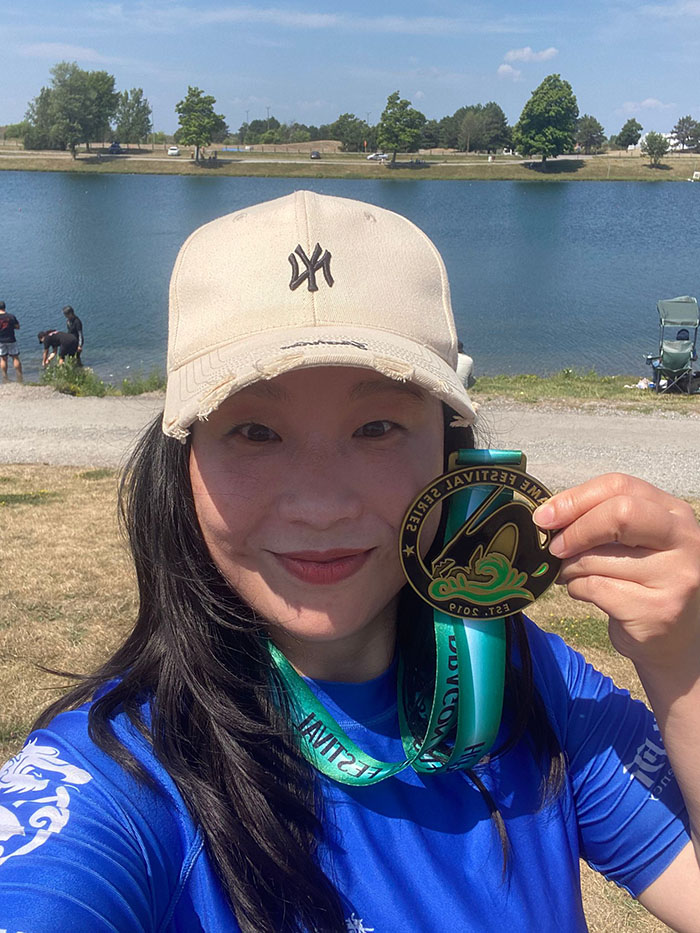 更令人振奋的是,她所属的“驡调查”龙舟队刚刚一举斩获了加拿大著名的“Welland龙舟挑战赛”500米金牌!!