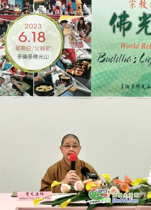 【加国生活网】多伦多佛光山、国际佛光会多伦多协会于2023年5月31日举行新闻发布会,宣布“2023宗教联合祈安法会暨佛光园游会”将于6月18日(父亲节)在多伦多佛光山恢复举办,诚挚邀请社会大众参加,支持蔬食环保及文教慈善,共创和谐社会。