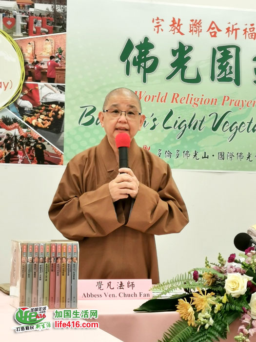 此一年一度的盛事,将分两部份进行,上午10时,宗教联合祈福法会由佛光龙狮团热闹启动;多伦多佛光山法师首先以佛教梵呗及〈为祈求世界和平祈愿文〉祝祷,接着各宗教代表依序上台,以各自的宗教语言、仪式,祈求国泰民安,世界和平。值此世界战火频传时刻,跨越宗教、种族、文化籓篱的祈愿祝祷,得到天主教、巴海大同教、犹太教、印度耆那教、回教、南传佛教等宗教的支持:而关心社区的三级政府官员、警察局、外交使节、社区慈善组织等代表亦将出席。