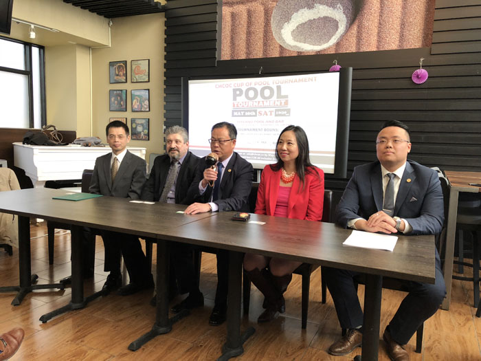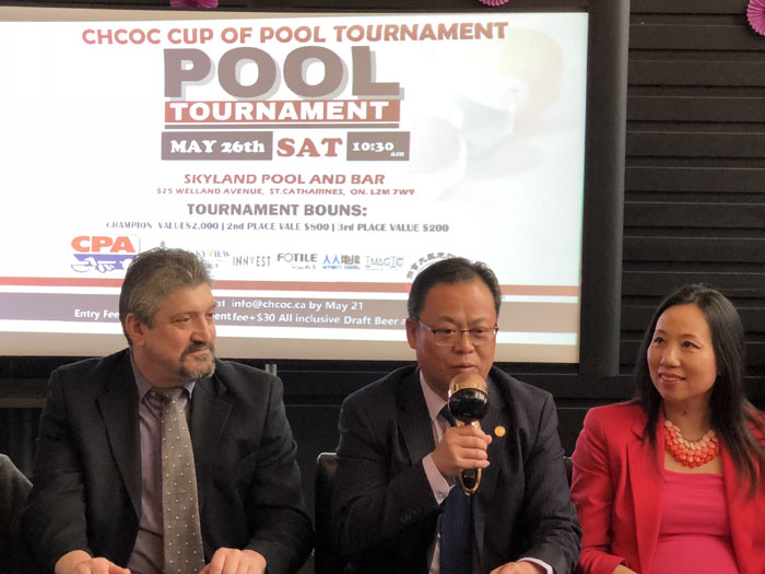 【加国生活网】加拿大黑龙江总商会(Canada Heilongjiang Chamber of Commerce)于2018年4月7日在Zen Cafe & Lounge举行新闻发布会,宣布第一届“黑龙杯”慈善桌球公开赛将于5月26日在新开张的Skyland 新天地娱乐会馆举行。本次桌球公开赛由加拿大黑龙江总商会发起并主办、加拿大职业桌球联赛组织(Canadian Poolplayers Association)支持监督,确保公开赛的公平与公正。