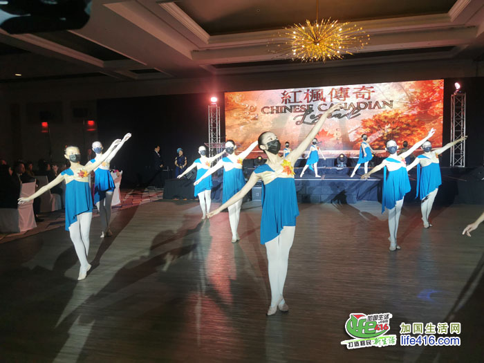 晚宴开幕仪式由Band of Her Majesty’s Canadian Ship York军乐队带领,接着由跃铃舞蹈艺术中心一群活泼可爱的小朋友伴随旋律优美的名曲“We are the world” 翩然起舞,以动感洋溢的舞蹈揭开序幕。大会由加籍华裔,曾获得加拿大首届《北美最强音》少儿组冠军,流行乐男歌手,李成宇担任特别嘉宾,演唱多首名曲,压轴好歌是满载鼓舞激励情怀的名曲“You Raise Me Up”。在他动人雄浑声韵引领下,本届“红枫传奇”人物和嘉宾一起谢幕,鼓励大家一起“泰然处逆怀希望,以爱为纲缔传奇”。